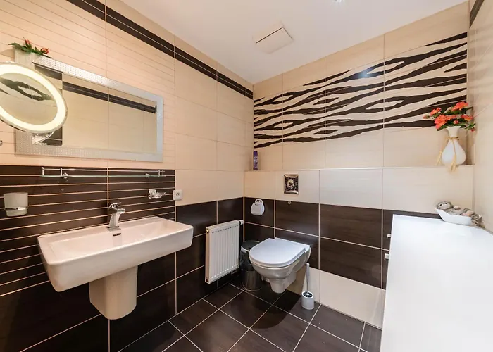 O apartamento Krásné ubytování s balkonem está equipado com cozinha totalmente equipada com electrodomésticos para preparar os seus próprios pratos. O alojamento fica a uma pequena distância da estação de metrô Kacerov e a 35 km do aeroporto de Praga Vaclav Havel.